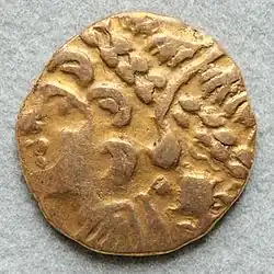 Nach der Invasion der Römer unter Cäsars hatte die Koalition der belgischen Stämme begonnen, ihre Münzen mit fast gleichem Gewicht und ähnlicher Gestaltung zu schlagen. Diese wurden nach dem Vorbild des zweiseitigen Ty der Ambianer geschaffen und waren weit verbreitet und in Gebrauch. Sie waren eine in Gewicht und Reinheit stabile Währung und eine der ersten Währungen verbündeter Völker.[2]