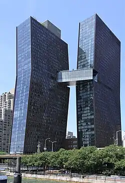 - ↑ David Gannon, 6sqft Waitlist opens for affordable rentals at copper-clad dancing towers in Murray Hill, from $832/month, erschienen am 27. Dezember 2022.