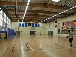 Erweiterungsgebäude und Basketballplatz