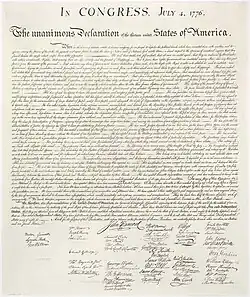 In der Unabhängigkeitserklärung der Vereinigten Staaten (englisch Declaration of Independence; offiziell: The unanimous Declaration of the thirteen united States of America ‚Die einstimmige Erklärung der dreizehn vereinigten Staaten von Amerika‘) proklamierten dreizehn britische Kolonien in Nordamerika am 4. Juli 1776 ihre Loslösung von Großbritannien und ihr Recht, einen eigenen souveränen Staatenbund zu bilden. Der größtenteils von Thomas Jefferson verfasste und vom Zweiten Kontinentalkongress verabschiedete Text stellt die Gründungsurkunde der Vereinigten Staaten dar und ist eines der wirkungsmächtigsten Dokumente der demokratischen Staatsphilosophie.