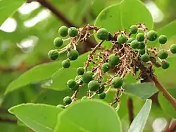 Es handelt sich um einen immergrünen Baum, der eine Höhe von 7 bis 40 Meter und Stammdurchmesser von 15 bis 150 Zentimeter (BHD) erreicht, unter ungünstigen Bedingungen aber strauchförmig bleibt. Der Stamm wächst meist nicht gerade, kreisrunde Stammquerschnitte sind selten. Oft entspringen der Stammbasis zahlreiche Schösslinge.[1] Junge Bäume haben gleichmäßig geformte, ovale Kronen, kennzeichnend für die Art sind jedoch die unregelmäßig geformten, weit ausladenden Kronen der Altbäume.[3]