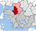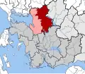| Gemeindebezirk | griechischer Name | Code | Fläche (km²) | Einwohner 2011 | Einwohner 2021 | Dimotikes Kinotites (Sg. Δημοτική Κοινότητα) |