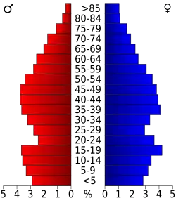 Auf das gesamte County bezogen setzte sich die Bevölkerung zusammen aus 23,5 Prozent Einwohnern unter 18 Jahren, 9,7 Prozent zwischen 18 und 24 Jahren, 27,7 Prozent zwischen 25 und 44 Jahren, 25,3 Prozent zwischen 45 und 64 Jahren und 13,8 Prozent waren 65 Jahre alt oder darüber. Das Durchschnittsalter betrug 38 Jahre. Auf 100 weibliche Personen kamen 91,1 männliche Personen. Auf 100 Frauen im Alter von 18 Jahren oder darüber kamen statistisch 87,1 Männer.