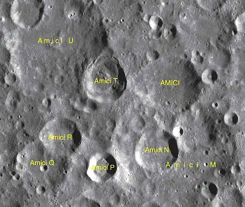 Amici ist ein Einschlagkrater auf der erdabgewandten Seite des Mondes, südlich des großen Kraters Icarus und nördlich des McKellar Mondkraters.