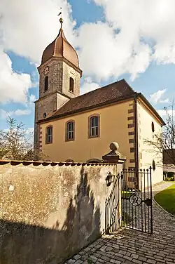 - ↑ a b c Edmund Zöller, Dieter Dietrich: Fränkische Wehrkirchen im Rangau und im Knoblauchsland. Seehars, Uffenheim 1993, ISBN 978-3-927598-11-9, S. 26 f.