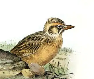 - ↑ In my opinion two allied but distinct specimen have been referred to Spizocoris conirostris in the British Museum collection, and I cannot do better than name them after my two friends, the late Dr. A. C. Stark and Mr. W. L. Sclater, in acknowledgement of the services to science rendered by them in their joint work on the Avifauna of South Africa.