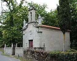 | Parada | Die Parroquia Parada ist seit dem 18. Jahrhundert dem heiligen Jakobus gewidmet, an dem Datum, an dem die Bruderschaft des Apostels gegründet und die Pfarrkirche gebaut wurde, in die die Kapelle des Pazo de Miranda integriert wurde. Früher gab es die Kapelle von A Poboanza für die Bewohner dieses Ortes und der Nachbardörfer Rairo, Fonte de Rairo und A Teixeira. Sie hatte ihren Ursprung wahrscheinlich im 12. Jahrhundert war dem Jesuskind gewidmet. Das Kreuz in der Nähe wird noch heute genutzt. | ![]() |