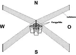 Ein Amphibienfangkreuz besteht aus kreuzförmig ausgerichteten Sperrzäunen unterschiedlichster Materialien mit einer Flügellänge zwischen 5 und 10 m. Im Kreuzungspunkt sind ein Fanggefäß (qualitativ/quantitative Erfassung) oder vier Fanggefäße (zusätzliche Erfassung der Wanderrichtung) in den Boden eingelassen, in denen sich die im Raum bewegenden Amphibien fangen. Da einige Amphibienarten (wie zum Beispiel Molche) gut klettern, wird häufig ein Überkletterungsschutz an den Sperrzäunen angebracht.