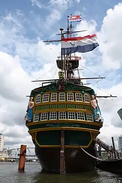 Ein Nachbau des Schiffes wurde zwischen 1985 und 1990 in den Niederlanden von etwa 400 Freiwilligen nach den Plänen der ursprünglichen Amsterdam gezimmert, ist jedoch in vielen Punkten historisch unkorrekt. Die Handwerker benutzten dabei Iroko-Holz für den Rumpf und orientierten sich an Schiffsbautechniken des 18. Jahrhunderts. Außerdem mussten aufgrund heutiger Schiffsbauvorschriften einige Modifikationen vorgenommen werden: Neben der Benutzung von Tropenholz statt Eiche für die Hülle und die Decks wurde die Deckshöhe angepasst, so dass man nahezu aufrecht stehen kann. Die Spanten wurden darüber hinaus verklebt und die Leitern wurden durch Treppenkonstruktionen ersetzt. Das Schiff wurde nach Amsterdam überführt und ist hier nahe dem Amsterdamer Schifffahrtsmuseum festgemacht; es kann als Museumsschiff besichtigt werden. (Lage: 52° 22′ 21″ N, 4° 54′ 51,5″ O)