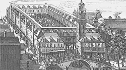 Der Komplex bestand aus einem Innenhof, der mit überbauten Galerien auf Rundbögen umsäumt war. Ebenerdig befanden sich zunächst Geschäfte, später die Königliche Akademie der bildenden Kunst (Koninklijke Academie van Beeldende Kunsten). Vom Platz de Dam gab es einen Zugang zum Börsengebäude, das beurspoortje ‚Börsentörchen‘ (der heutige Durchgang ist nicht mehr das originale Tor, das 1912 entfernt wurde). An der Südseite befand sich neben der Brücke über den Mittelübergang ein Glockenturm mit Glockenspiel von François Hemony.