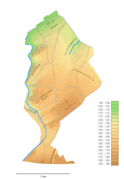 Zum Tal des Kirchhörder Baches fällt das Gelände im Westen der Ortschaft steil ab, wogegen sich im Norden das flachere Terrain der ehemaligen Brünninghauser Heide anschließt. Nach Nordosten sinkt das Gelände zum Olpketal in Lücklemberg ab, nur zur Bittermark steigt der Boden von der Ortsmitte weiter an. Im Süden schließt sich nach dem Abfall zur ehemaligen Zeche Gottessegen der Anstieg zum Hauptkamm des Ardeygebirges an.