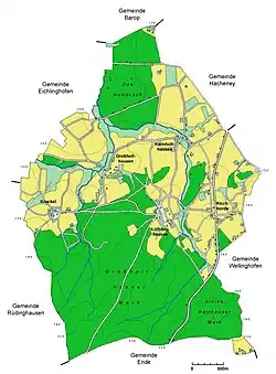 - ↑ Stephanie Reekers: Die Gebietsentwicklung der Kreise und Gemeinden Westfalens 1817–1967. (= Veröffentlichungen des Provinzialinstituts für Westfälische Landes- und Volksforschung des LWL, Reihe 1, Heft 18.). Aschendorff, Münster (Westfalen) 1977, ISBN 3-402-05875-8, S. 253.