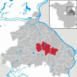 - ↑ Fünftes Gesetz zur landesweiten Gemeindegebietsreform betreffend die Landkreise Barnim, Märkisch-Oderland, Oberhavel, Ostprignitz-Ruppin, Prignitz, Uckermark (5.GemGebRefGBbg) vom 24. März 2003 (Gesetz- und Verordnungsblatt für das Land Brandenburg, I (Gesetze), 2003, Nr. 05, S. 82), geändert durch Gesetz vom 1. Juli 2003 (Gesetz- und Verordnungsblatt für das Land Brandenburg, I (Gesetze), 2003, Nr. 10, S. 187)