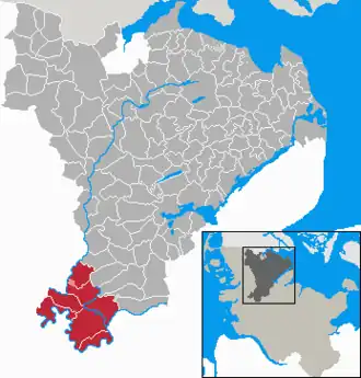 - ↑ Reichte aber im Osten bis Meggerdorf über sie hinaus und endete vor Seeth und Drage an der Kreisgrenze nach Nordfriesland.