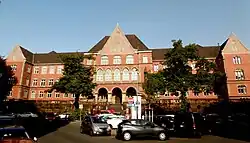 Das ursprüngliche Gerichtsgebäude Kongressstraße 11 entstand 1887–1888 nach einem Entwurf des Architekten und preußischen Baubeamten Karl Friedrich Endell (1843–1891), der als Oberbaudirektor im preußischen Ministerium der öffentlichen Arbeiten in Berlin wirkte.[3]