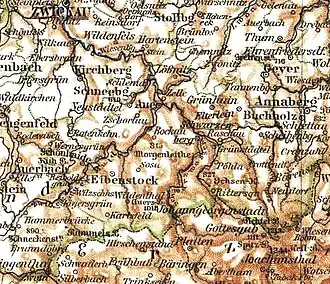 | 17 | Grünhain | 2.587 | 15 | Bermsgrün | 2.694 | Gutsbezirk Schindlers Blaufarbenwerk | 63 |