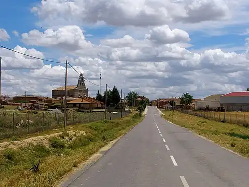 - Die etwa 300 m nördlich des Ortes isoliert stehende dreischiffige Ermita de Nuestra Señora de las Fuentes wurde zu Ehren einer spätromanischen Madonnenfigur als Wallfahrtskirche errichtet. Es ist ein mit einem Querschiff versehenes Bauwerk aus der Zeit des Übergangs von der Romanik zur Gotik (um 1300). Das im Scheitel leicht angespitzte Südportal ragt leicht aus der Mauerflucht hervor, wodurch ein tiefenräumiges Archivoltenportal erst möglich wurde. Das Innere der Kirche ist durch frühe Bündelpfeiler in drei Schiffe unterteilt, wobei das Mittelschiff geringfügig höher ist als die beiden Seitenschiffe. Höhepunkt im Innern ist ein spätbarockes Altarretabel im Stil des Churriguerismus.[8]