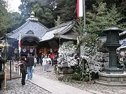 Der hochgelegene, über einen steilen Weg, aber auch über eine Straße zu erreichende Tempelbereich besteht aus der Haupthalle (本堂; Hondō; im Plan 1) und dem Oku-no-in (奥の院). Daneben gibt es noch Gebäude der Mönche.