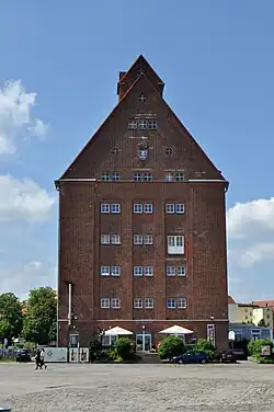 Der hohe Backsteinbau mit hohem Satteldach wurde in den Jahren 1939 bis 1940 errichtet und war damit der letzte der Speicher auf der Hafeninsel. Das Gebäude wurde als Silo für Getreide genutzt.