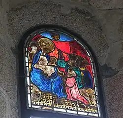 Die Szene im zentralen Chorfenster (Nr. 0), mit einer Höhe von 62 cm und einer Breite von 47 cm, wurde von einer unbekannten Werkstatt geschaffen. Es zeigt die Anbetung der Könige, ein weit verbreitetes Bildmotiv der christlichen Kunst des Mittelalters und der Neuzeit. Das Fenster, das in einem schlechten Zustand ist, zeigt links als dominante Gestalt Maria mit dem Jesuskind und dahinter Josef. Rechts sind die Heiligen Drei Könige dargestellt. Über den Personen ist ein Stern am Himmel zu sehen.