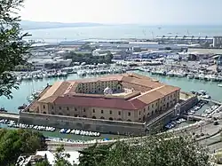 Unter den zahlreichen Monumenten der Stadt befindet sich auch das Lazzaretto (Laemocomium oder Mole Vanvitelliana), das von dem Architekten Luigi Vanvitelli 1732 erbaut wurde. Das Lazzaretto ist ein fünfeckiges Gebäude mit einer Fläche von mehr als 20.000 Quadratmetern. Es wurde gebaut, um die stationierten Truppen und die Offiziere vor Seuchen zu schützen, die von fremden Schiffen eingeschleppt wurden. Später wurde es als Militärkrankenhaus (daher: Lazarett) und als Kaserne verwendet.