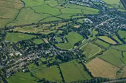 ![]() Luftbild mit Burg in der Bildmitte | |||