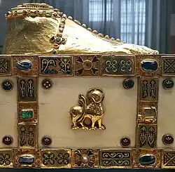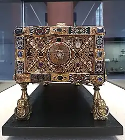 - Ernst Günther Grimme: Goldschmiedekunst im Mittelalter. Form und Bedeutung des Reliquiars von 800 bis 1500. M. DuMont Schauberg, Köln 1972, ISBN 978-3-7701-0669-1, S. 28–29.