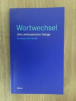 In ihrer Geschichte von etwa 2500 Jahren zeichnete die europäische Philosophie nach Dorschels Einschätzung eine Vielfalt an Gattungen aus; ihre Möglichkeiten verkümmerten, sobald Philosophie sich, wie in der Gegenwart, weitgehend auf die Genres Monographie und Artikel beschränke. Deren konventionelle Formen der Exposition ließen wenig Raum dafür, philosophische Positionen einzuführen und dann, in der Entfaltung des Gedankengangs, in unterschiedlichem Maß Abstand von ihnen zu nehmen. Um dies auf dem Wege dramatischer sowie epischer Ironie und einer Heuristik der Fiktion zu erreichen, hat Dorschel Formen wie den Brief, den Dialog, den Monolog und die philosophische Erzählung ('conte philosophique') erneuert, die in der Renaissance und Aufklärung geblüht hatten,[46] bei der modernen akademischen Philosophie hingegen in Ungnade fielen.[47] Zehn der Dialoge Dorschels liegen gesammelt in dem Band Wortwechsel (2021) vor.