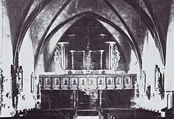 30[17] | 1914 beim Abbruch der Vorgängerkirche blieben weder das Pfeifenwerk noch das Barockprospekt erhalten. Lediglich sieben Pfeifenreihen wurden noch bis 1938 in einer kleinen Orgel in St. Kilian genutzt.[18] | |