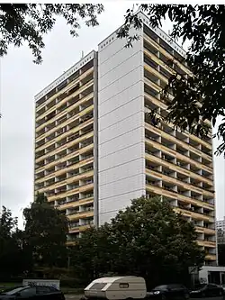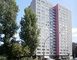 ↑ abcdTypenbau Wohnhochhaus (Memento vom 5. Juli 2017 im Internet Archive): „WHHGT 18 (Typ Berlin) – diese Bezeichnung steht für Wohnhochhaus Großtafelbauweise 18 Stockwerke. Dieser Plattenbau-Typ wurde 1969–1971 vom VEB Wohnungsbaukombinat Berlin entwickelt. Das Architektenkollektiv um Joachim Seifert und Helmut Stingl war hier federführend.“