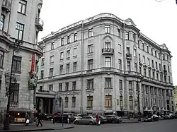- Wohnhaus an der Ecke Suworow-Prospekt und 5. Sowjetische Straße in Sankt Petersburg.[5]