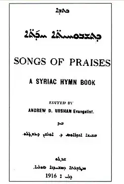 Er wurde bekannt als der Persian Evangelist, verfasste zahlreiche Bücher und Hymnen.[1] Er gab auch die Zeitschrift The Witness of God (1917) heraus. Seine Biographie veröffentlichte er als Fortsetzungsgeschichte in der Zeitschrift unter dem Titel The Life of Andrew bar David Urshan. Später wurden diese Artikel zu einem Buch zusammengefasst. Er hinterließ keine Schriften in Assyrisch-Neuaramäisch.[2]