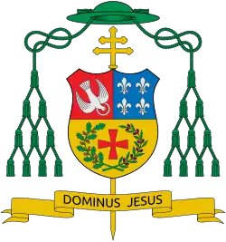 Das Wappen führt er unverändert weiter, tauschte nur hinter dem Wappenschild das Kreuz des Bischofs gegen das Doppelkreuz des Erzbischofs aus; darüber den grünen Galero mit nun je zehn herunterhängenden Quasten. Darunter sein Wahlspruch DOMINUS JESUS („Jesus ist der Herr“) ist den Geistesgaben aus dem 1. Brief des Paulus an die Korinther (1 Kor 12,3 ) entnommen.