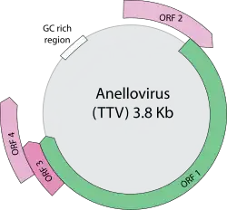 Die Anelloviridae sind eine Familie von DNA-Viren. Ihr Genom besteht aus einer ringförmigen (zirkulären) Einzelstrang-DNA negativer Polarität, so wie bei der Virusfamilie Circoviridae, aus der die Anelloviridae 2005/2009 ausgegliedert wurden. Sie haben ein nicht umhülltes Kapsid von abgerundet ikosaedrischer Symmetrie mit T=3-Symmetrie. Ihre Wirte sind Wirbeltiere. Es sind etwa 200 verschiedene Arten bekannt.[1][2] Die (ehemalige) Typusart ist das 1997 entdeckte Torque-Teno-Virus 1 (TTV-1) aus der Gattung Alphatorquevirus.[3]