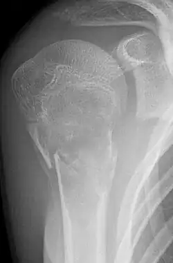 • Einfache (juvenile) Knochenzyste: Gutartige, primär einkammerige, flüssigkeitsgefüllte Höhle, meist im metaphysären Markraum. Wird meist erst durch Spontanfraktur auffällig. Klassisches Röntgenzeichen ist das Fallen-Fragment-Sign.