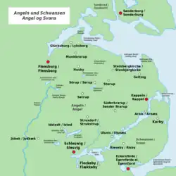 Das Angeldänische (dänisch Angeldansk oder Angel(bo)mål) war eine in Angeln (dän.: Angel) und Schwansen (dänisch Svans) verbreitete Varietät des Südjütländischen (Sønderjysk)[1].