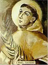 Angelus wurde um 1185 in Jerusalem als Sohn eines konvertierten Juden geboren. Er lebte am Fuße des Berges Karmel und am Jordan als Eremit. Zu Beginn des 13. Jahrhunderts war er in den von Berthold von Kalabrien (1140–1195) gegründeten Orden der Karmeliten eingetreten und kam als erster Bußprediger nach Italien. Seine Missionstätigkeiten führten ihn nach Süditalien und nach Sizilien, wo er am 5. Mai 1220 oder 1225 in Licata den Märtyrertod starb.