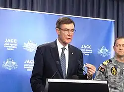 Angus Houston bei einer Pressekonferenz der Joint Agency Coordination Center (2014)