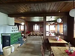 Im Erdgeschoß befindet sich die in den 1970er Jahren gegen Osten und Norden erweiterte Gaststube, in der Südecke, dem ursprünglichen Teil, haben sich die Wandverkleidung und teilweise Mobiliar aus der Bauzeit erhalten. Die Küche und weitere Nebenräume sind ebenfalls im Erdgeschoß untergebracht. Das Obergeschoß beherbergt die Schlafräume mit Betten und Matratzen sowie eine Dunkelkammer.[5]