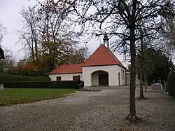 Gleich gegenüber der Grundschule liegt der neue Friedhof mit der Aussegnungskapelle. Er wurde 1953 angelegt, da der bisherige Friedhof um die Kirche St. Adelgundis nicht mehr ausreichend Platz bot. Das Gelände des alten Friedhofs wurde eingeebnet, die Gräber entfernt und ein Gedenkstein für alle Verstorbenen aufgestellt.
