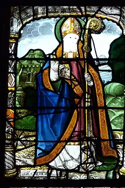 Hl. Anianus als Bischof auf einem Bleiglasfenster in der Pfarrkirche Saint-Aignan in Chartres (16. Jh.)