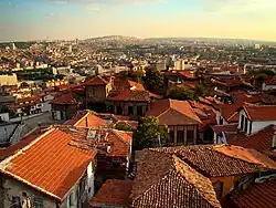 Die Ahi waren als Ausläufer der Futuwwa-Bewegung gildenartige Bruderschaften der städtischen Bevölkerung, etwa der Handwerker, deren Führer in Abwesenheit anderer Herrschaftsinstanzen staatliche Aufgaben in Anspruch nahmen[6]. 1356 eroberte Orhan I. Ankara und gliederte es ins Osmanische Reich ein, welches dessen Entwicklung fortan – mit der Ausnahme der Besatzung 1401–1402 durch Timur nach der Schlacht bei Ankara – bis zum Ersten Weltkrieg bestimmen werden sollte. Ankara war Hauptstadt eines Sandschak im Eyâlet Anadolu und wurde 1841 Verwaltungssitz des neu gebildeten gleichnamigen Eyalets (ab 1867 Vilâyet Ankara). Seit 1892 ist Ankara durch die Anatolische Eisenbahn mit Istanbul verbunden.