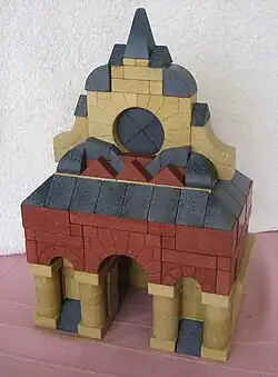 Erfunden wurden die Bausteine von den Brüdern Gustav und Otto Lilienthal, die sie zunächst auch selbst herstellten. Vertrieben wurden die Kästen unter dem Markennamen Georgens. Das Bauen.[2] Allerdings scheiterten sie als Unternehmer, weil sie kein tragfähiges Marketingkonzept hatten. Sie verkauften die Erfindung dem Unternehmer Friedrich Adolf Richter, der die Bausteine patentieren ließ,[1] was die Brüder Lilienthal vorher versäumt hatten.[3] Allerdings nahmen sie ein US-amerikanisches Patent mit dem Hinweis Assignors to Friedrich Adolf Richter.[4] Richter produzierte die Bausteine ab 1882 in seiner pharmazeutischen Fabrik in Rudolstadt.[5] Nach dem Erfolg des Produkts folgte ein langwieriger Patent- und Rechtsstreit zwischen den Erfindern und dem Unternehmer, den Richter schließlich gewann.[6]