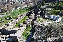 Etwa 400 m westlich des Tempels liegen die sogenannte Caracalla-Thermen, eine römische Badeanlage aus dem 3./4. Jahrhundert. Von den Badegebäuden sind Grundmauern und die Ziegel der Hypokaust-Heizungsanlage erhalten. Auf dem Platz für sportliche Übungen, der Palästra, sind zahlreiche Stelen, Kapitelle und Inschriften aufgestellt, die auf dem Stadtgebiet von Ankara gefunden wurden.