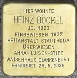 Stolperstein in Apolda für Heinz-Böckel, Verbrechensopfer