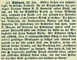 - ↑ Clemens von Bönninghausen: Dritte und hoffentlich letzte Nachschrift zu meiner Geschichte der Untersuchung der Nonne A.C. Emmerich zu Dülmen mit autentischen Belägen, Wittneven, Coesfeld 1820, S. 14.