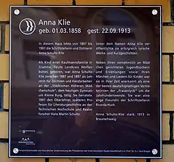 - ↑ Gerd Biegel: Die Schriftstellerin Anna Klie. In: Braunschweiger Zeitung vom 4. Oktober 2012.