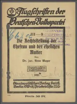 - ↑ Die Rechtstellung der Ehefrau und der ehelichen Mutter, in: Flugschrift der Deutschen Volkspartei, 1921, Helene-Lange-Archiv via Meta-Katalog