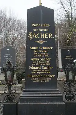 Anna Sacher wurde auf dem Dornbacher Friedhof (Gruppe 1, Nummer 44) in Wien beerdigt. Gatte Eduard sen. ist in der Familiengruft am Helenenfriedhof in Baden bei Wien beigesetzt.