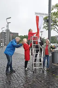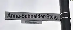 Die Stadt Köln benannte 2005 einen Straßenzug im Rheinauhafen in Anna-Schneider-Steig.[6][7]